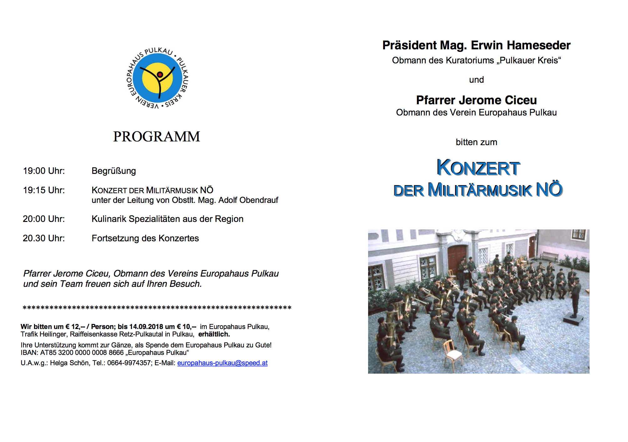 Auch heuer bespielt die Militärmusik NÖ das Europahaus in Pulkau! Letztes Jahr wurde nach dem Konzert die „Große Österreichische Flaggenparade“ aufgeführt.