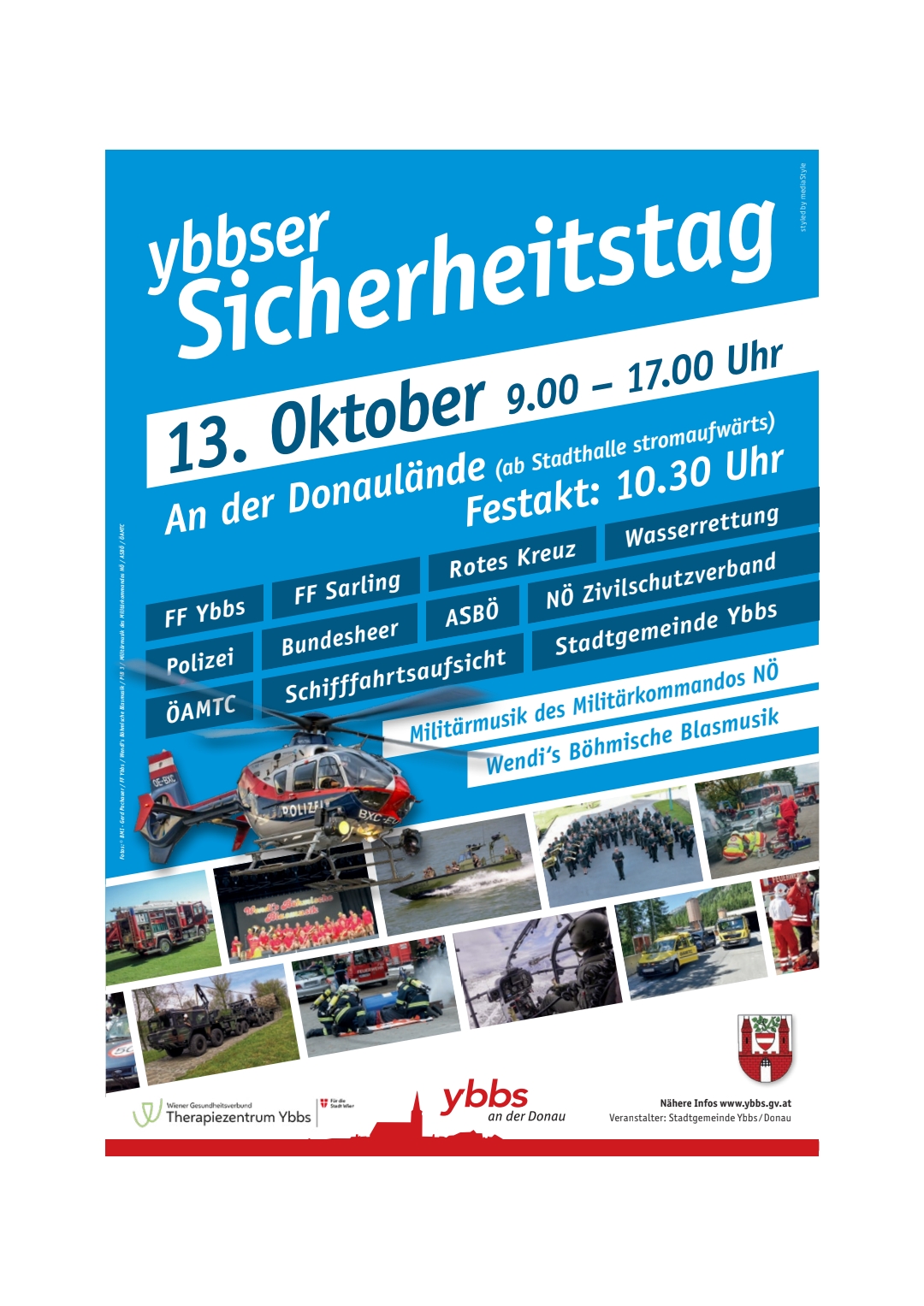 SICHERHEITSTAG 2023 9.00 – 17.00 UHR (PUBLIKUMSVERANSTALTUNG) FESTAKT: 10.30 UHR (EHRENGÄSTE - ANSPRACHEN, FESTZELT, MILITÄRMUSIK) DONAULÄNDE (AB STADTHALLE STROMAUFWÄRTS) Der Mehr lesen