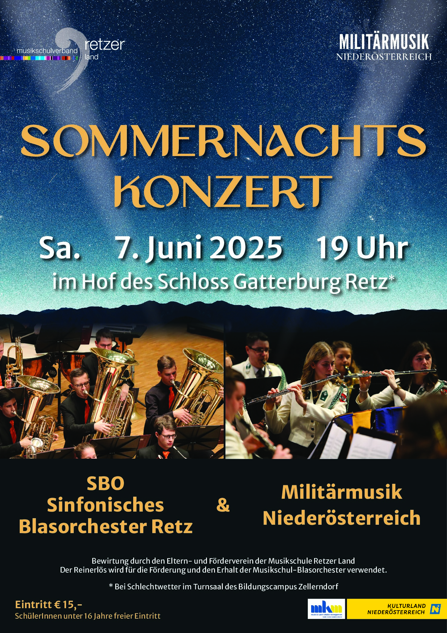 Am Samstag, dem 7. Juni 2025, findet um 19 Uhr im Hof des Schlosses Gatterburg in Retz ein Sommernachtskonzert statt. Mehr lesen